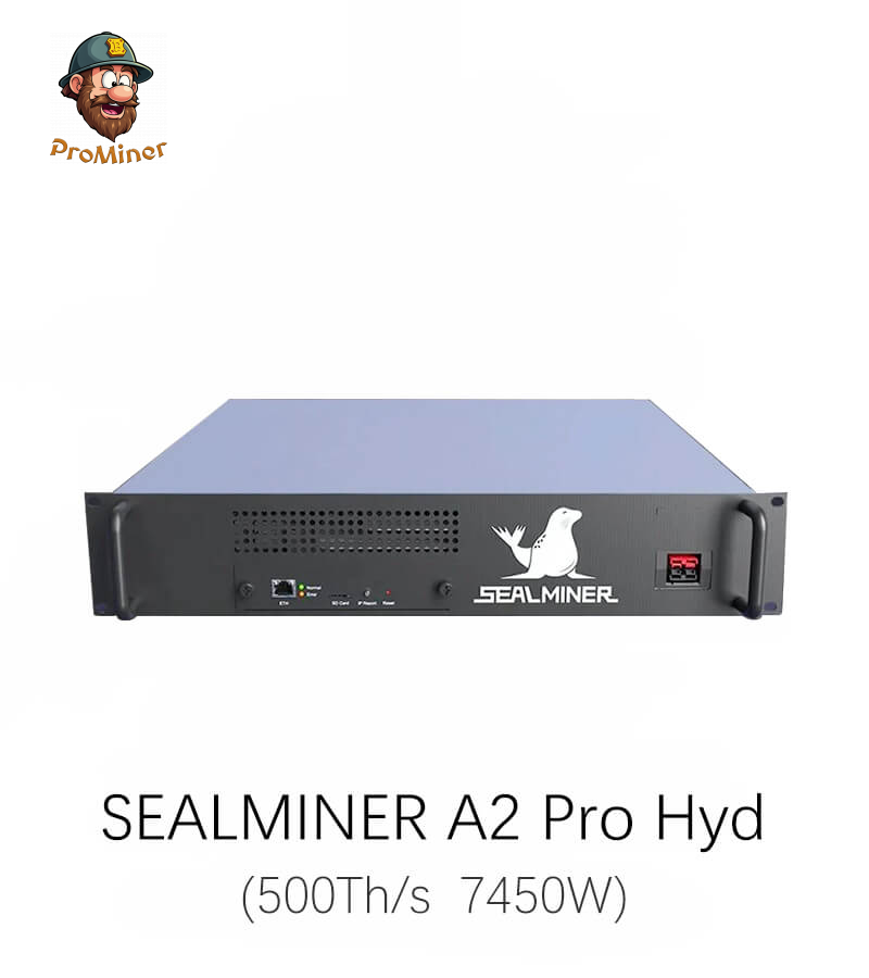 The Bitdeer SealMiner A2 Pro Hyd is a SHA-256 ASIC miner optimized for Bitcoin mining, delivering a maximum hashrate of 500Th/s with a power consumption of 7450W.